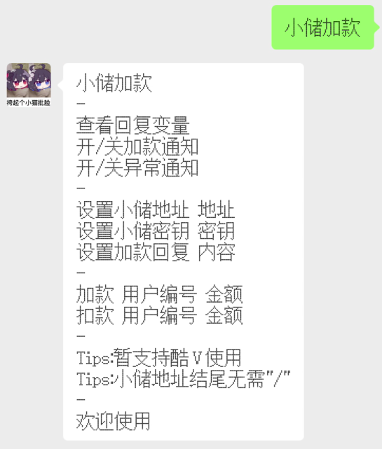 8.🍁 小储云 私聊自助加扣款,可指令指定加款用户
