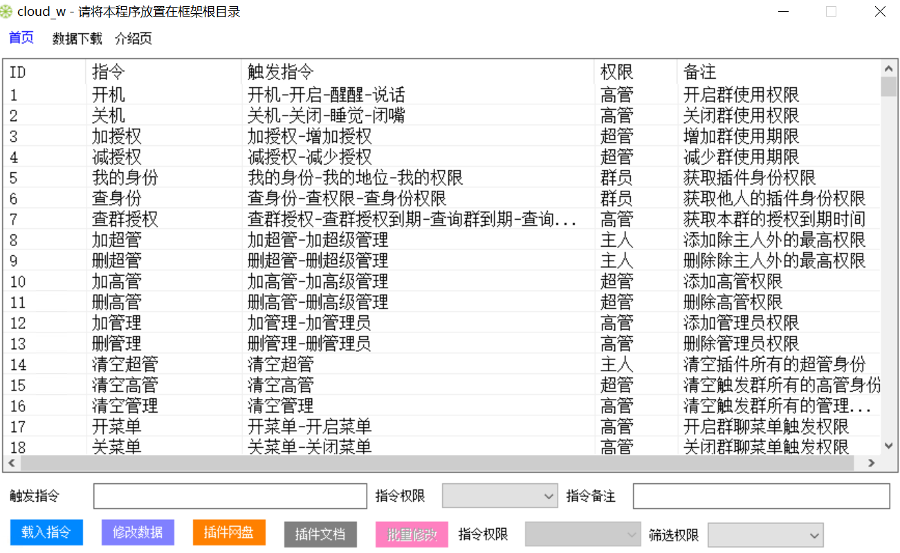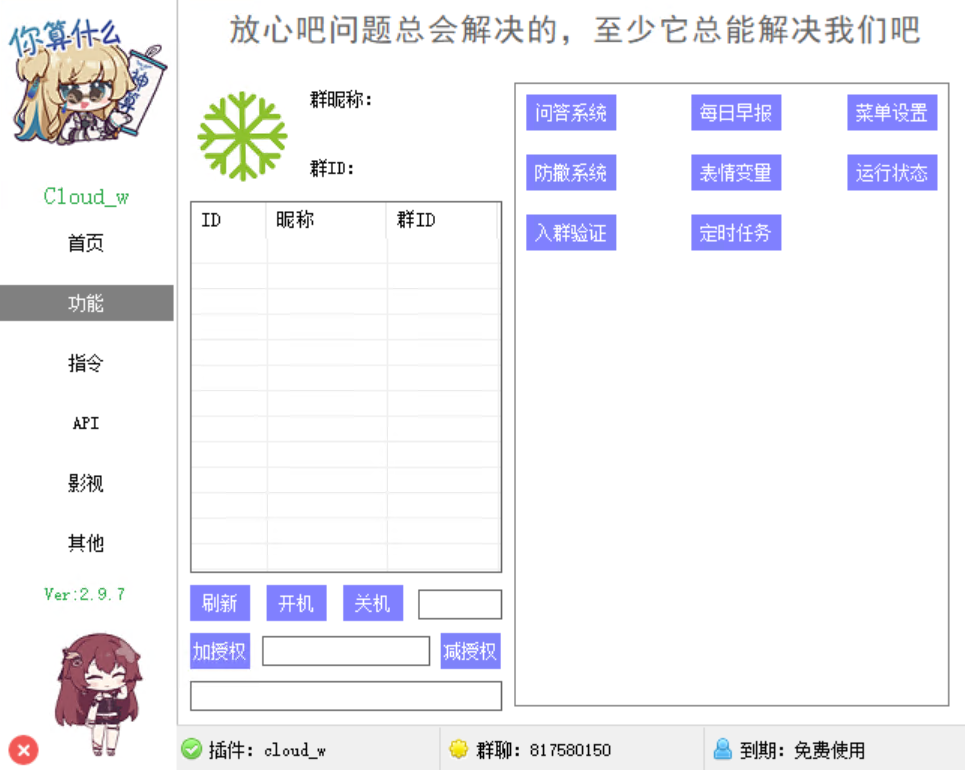 3.选择插件侧边栏功能选项,对需要使用的群添加授权期限和开关