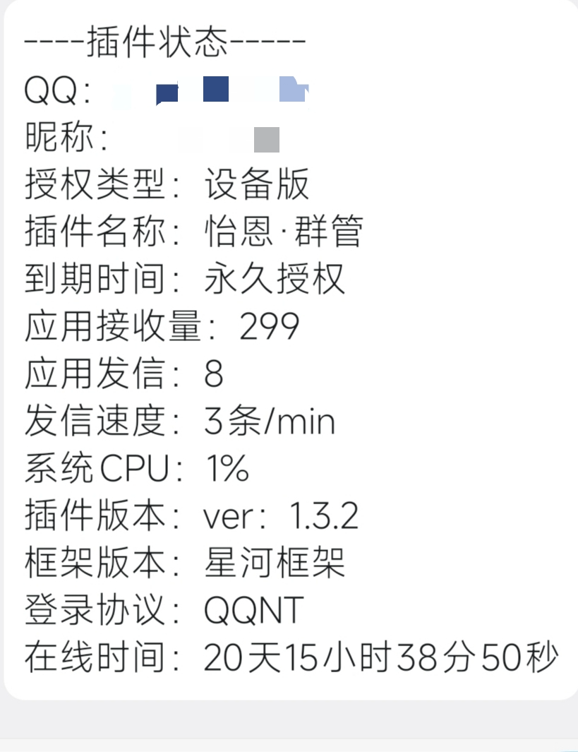 一款免费的QQnt框架每天限定10张卡密需要的可自行入群看群公告领取,稳不稳定看图片。